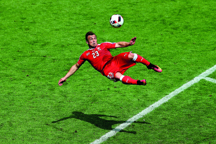 而若论他最能发挥关键作用的舞台,莫过于国家队赛事——正是在国家队,他打进了职业生涯中或许最为著名、也最为出色 的一粒得分 。那是发生在2016年欧洲杯上的一幕:在首轮出回合赛中,瑞士队遭遇了波兰队。赛事 进入最后10分钟,瑞士队仍以一球追赶 。