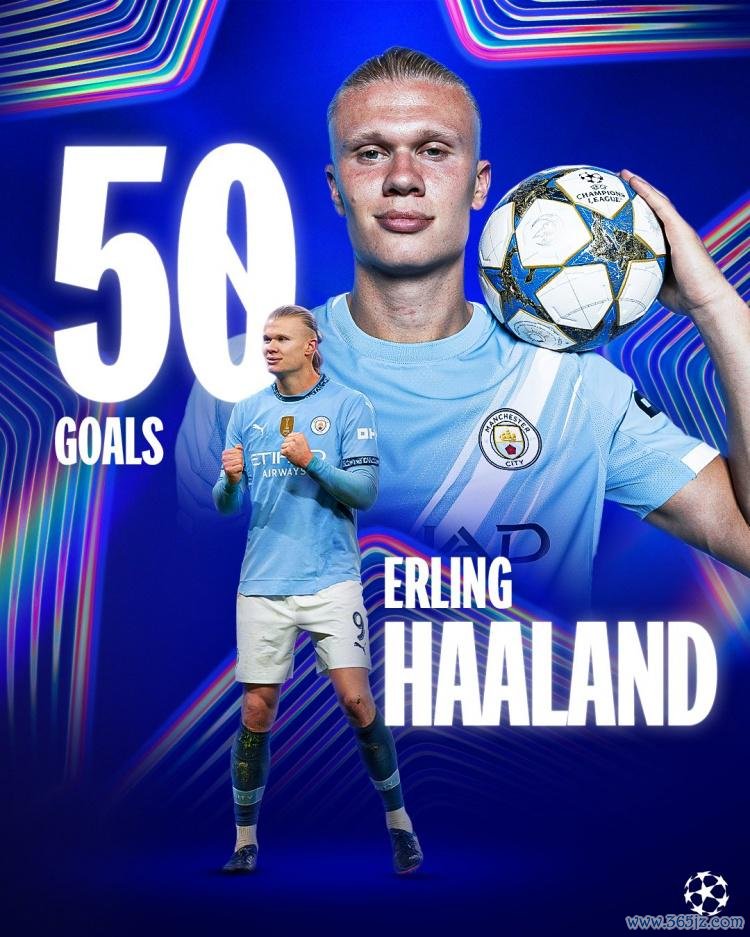 据统计,哈兰德在欧冠49场比赛中打进第50球,成为了第10位实现欧冠50球建立的球员,亦然欧冠历史攻入50球最快的球员,很快欧冠官方更新海报奉上祝愿。