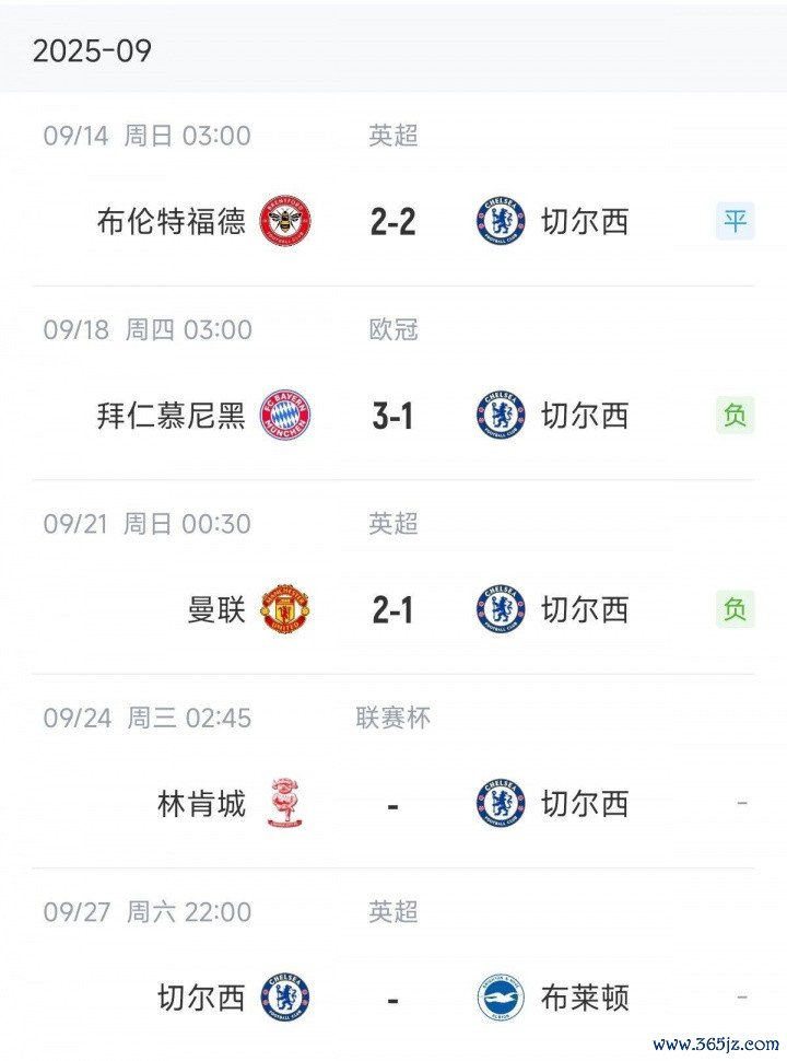 直播吧09月21日讯 英超第5轮,切尔西1-2不敌曼联,9月4连客暂时1胜难求2负1平。