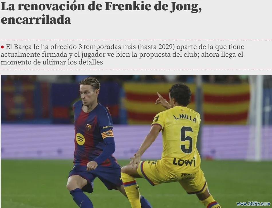 寰宇体育报音书,弗兰基-德容行将和巴萨续约到2029年,两边一经杀青公约。