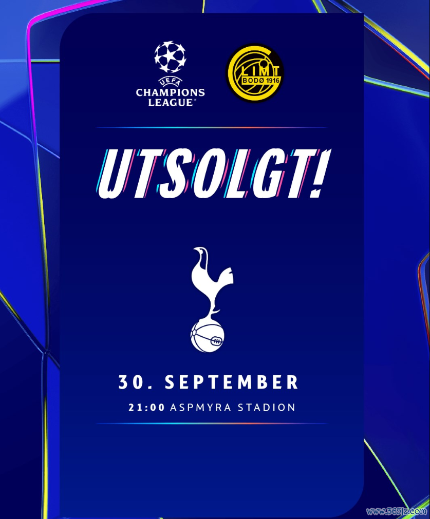 雷速体育9月24日讯 挪超博德忽闪官方发文默示,球队欧冠联赛阶段主场对阵热刺的门票已沿路售罄。博德忽闪对阵热刺的比赛将在北京工夫10月1日的凌晨三点开球。
