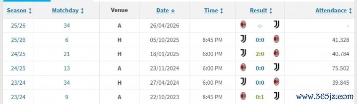 字据德国转会市集的数据,尤文聚会5场联赛零封米兰,战绩2胜3平。