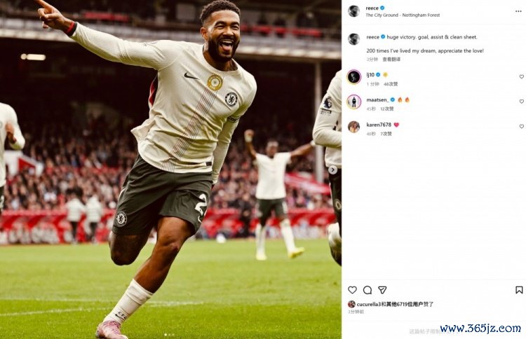 本场比赛里斯-詹姆斯迎来球队生计200场里程碑,况兼传射立功。他在赛后社媒晒照写谈:“一场大捷,况兼得到进球和助攻,完成零封,200次出场终了梦思,感谢全球的爱!”