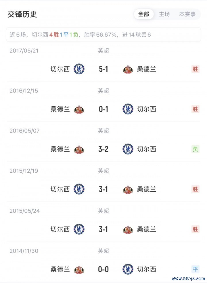 赛前切尔西8轮14分,逾期第四利物浦1分,球队各项赛事获取4连胜。桑德兰8轮一样也拿到14个积分,球队近6轮3胜2平1负,惟一败仗是0-2曼联。