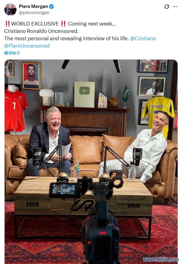 10月30日讯 著名主握东说念主皮尔斯-摩根在社媒预报了我方下周将发布与葡萄牙巨星C罗进行的专访节目。