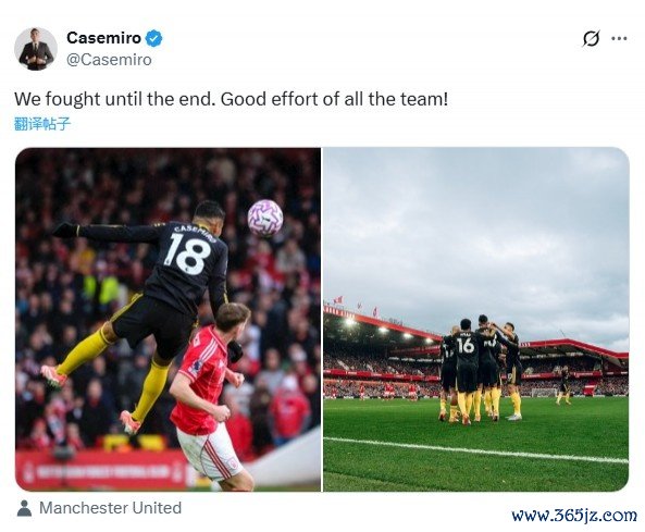 赛后,卡塞米罗在外交媒体晒出我方头球以及与队友庆祝的像片,并配文写谈:“咱们搏斗到了终末,全队齐付出了很棒的死力!”