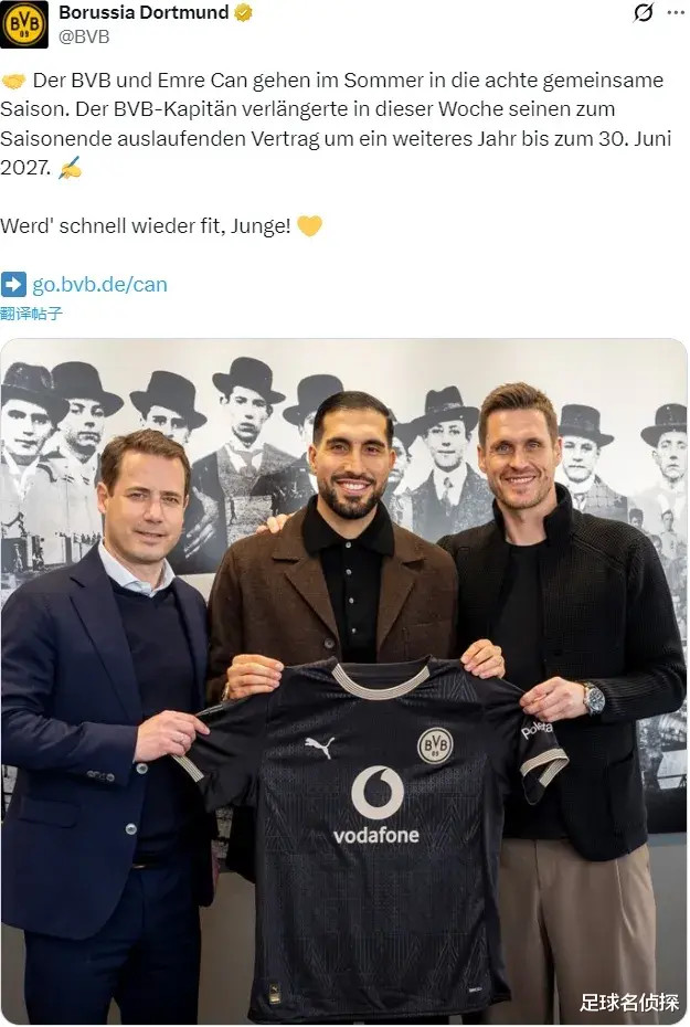 官方:尽管左膝十字韧带撕裂,但多特蒙德还是宣布和埃姆雷詹签下了一份2027年到期的新合同。