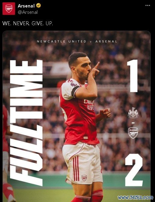 阿森纳社媒赛后情感发文:“咱们永不废弃!”