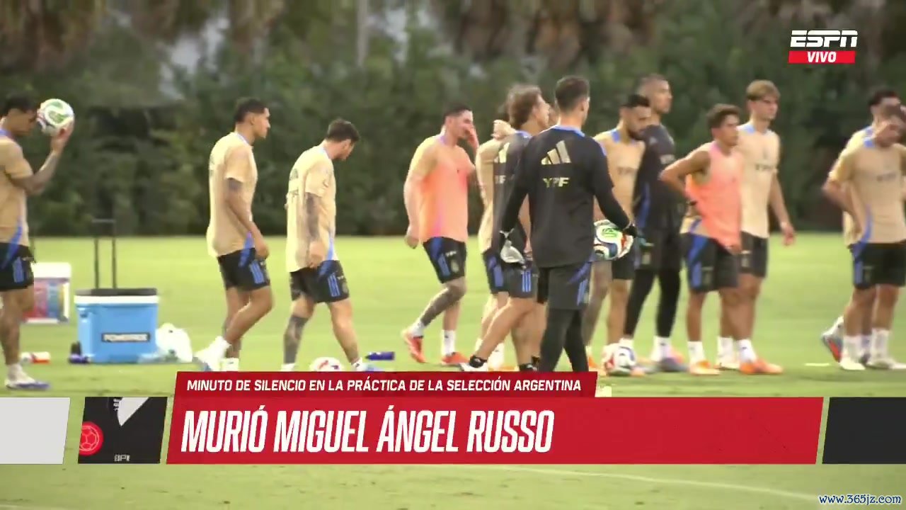 阿根廷队正在迈阿密备战友谊赛,球队在考研场上进行致哀典礼,以吵嘴死亡的鲁索。