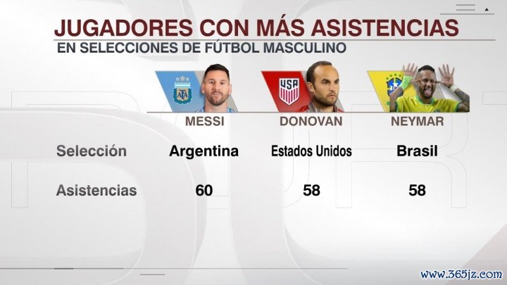 据ESPN阿根廷统计梅西还是在阿根廷队送出了60次助攻,卓越内马尔和多诺万的58次,成为历史国度队助攻王。