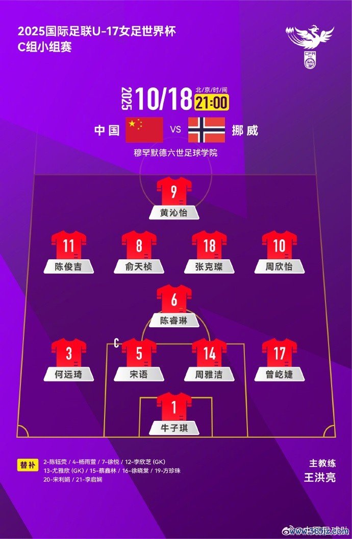 2025国外足联U-17女足天下杯C组小组赛,中国队 VS 挪威队首发名单出炉!