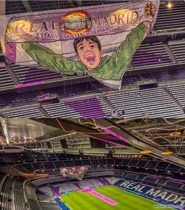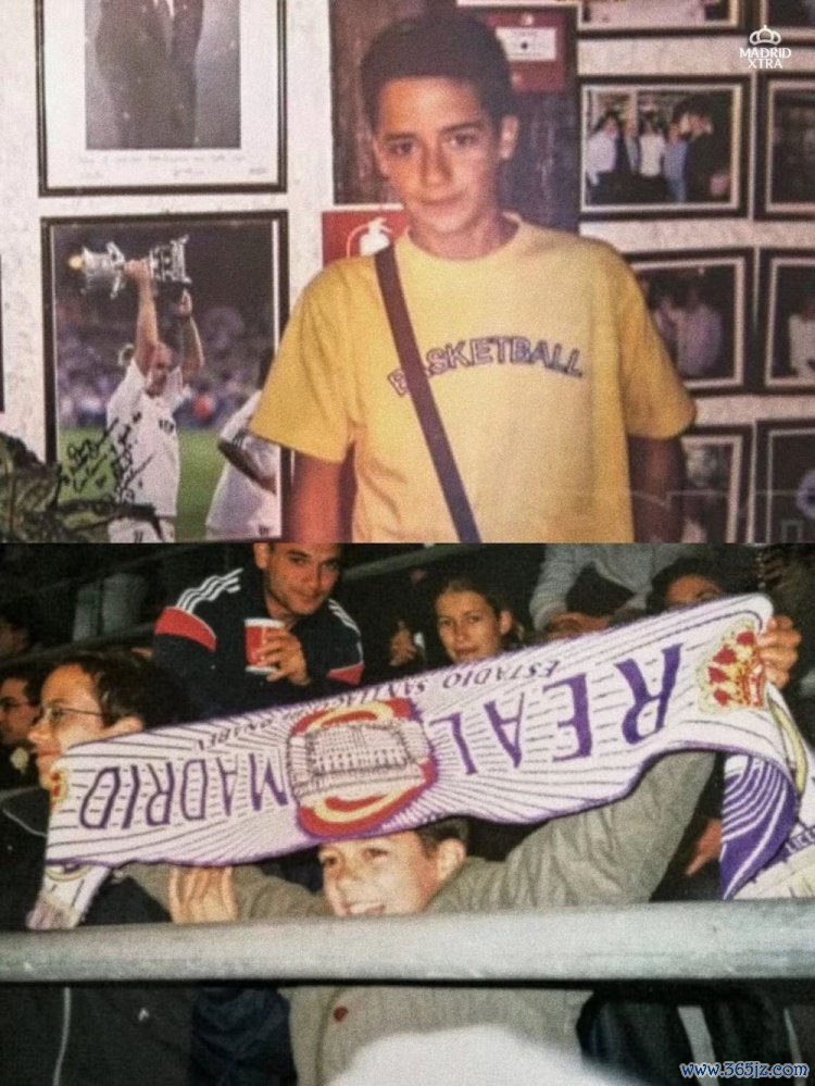 TIFO试验为巴斯克斯2017年在国度德比之前社媒发布的相片,少年时间的巴斯克斯高举皇马领巾。