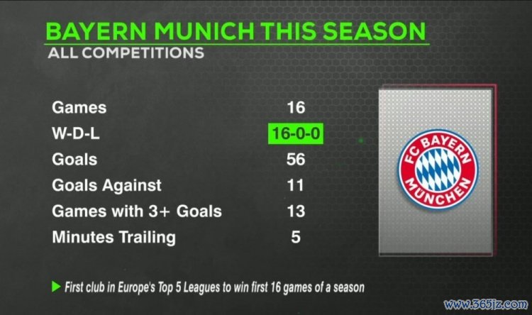 数据统计走漏,拜仁在本赛季各项赛事16战保捏全胜,打进56球、丢11球。有13场比赛不详至少打进3球,本赛季策画仅有5分钟处于过期。
