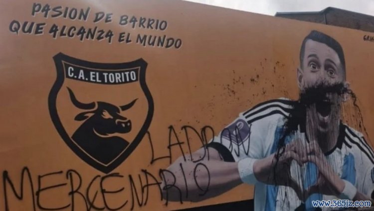 11月22日讯 据阿根廷媒体tycsports报谈,迪马利亚在罗萨里奥的一副壁画被东谈主为龙套,还写上了“小偷,雇佣兵”等词语。
