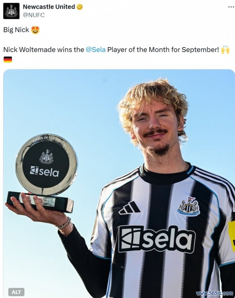 9月30日讯 纽卡官方公布了球队9月份队内最好球员,新援沃尔特马德当选。
